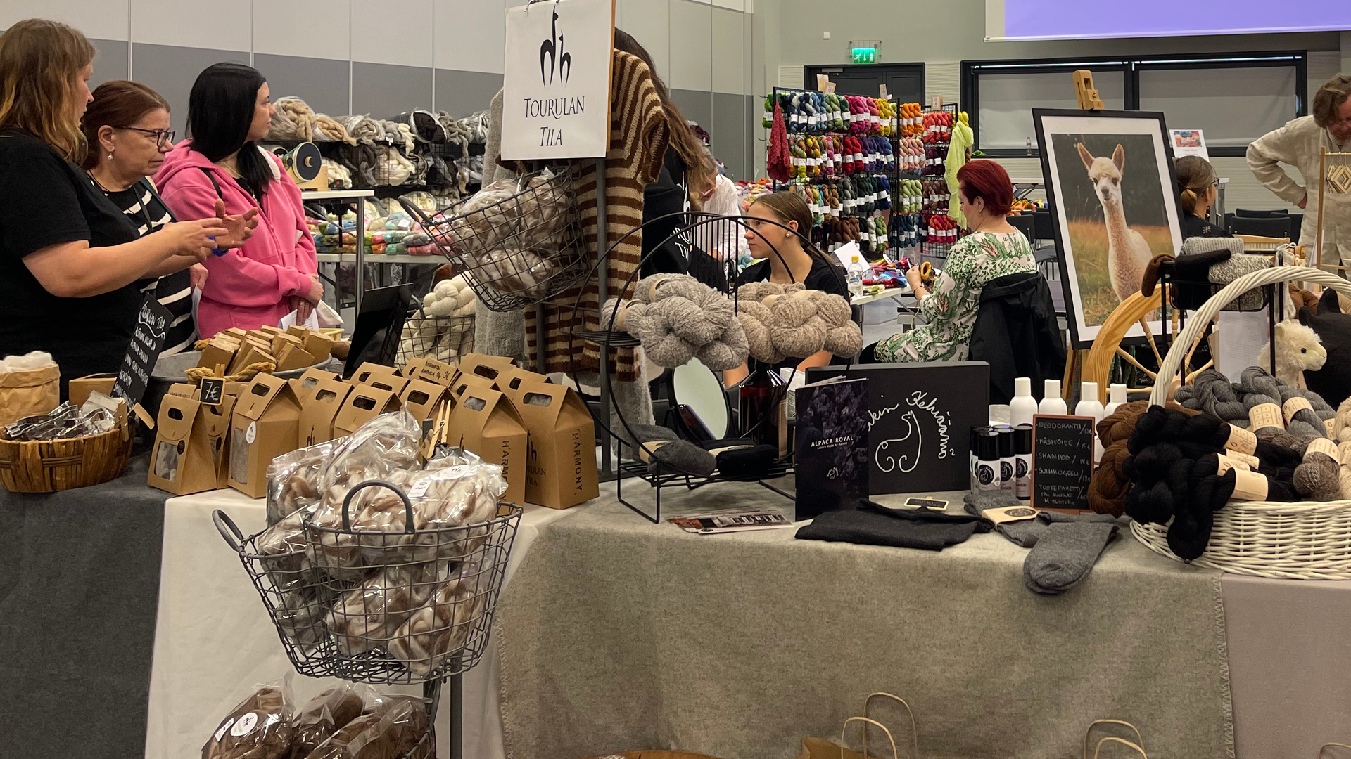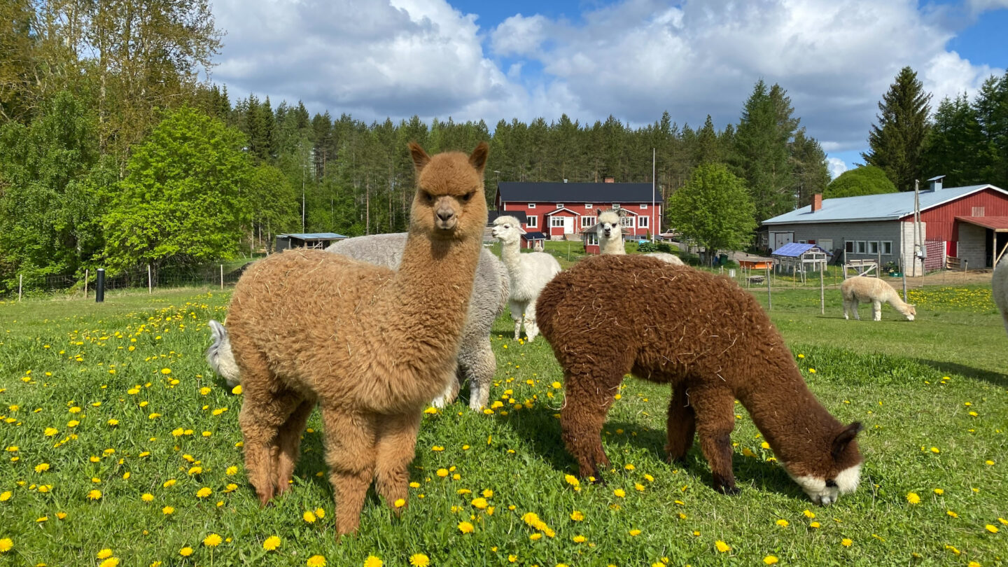 Myynnissä alpakkalankaa ja raakavillaa omalta tilata sekä valmiita käsitöitä ja alpakka-aiheisia oheistuotteita, mm. kosmetiikkaa ja leluja. Lähituottaja.