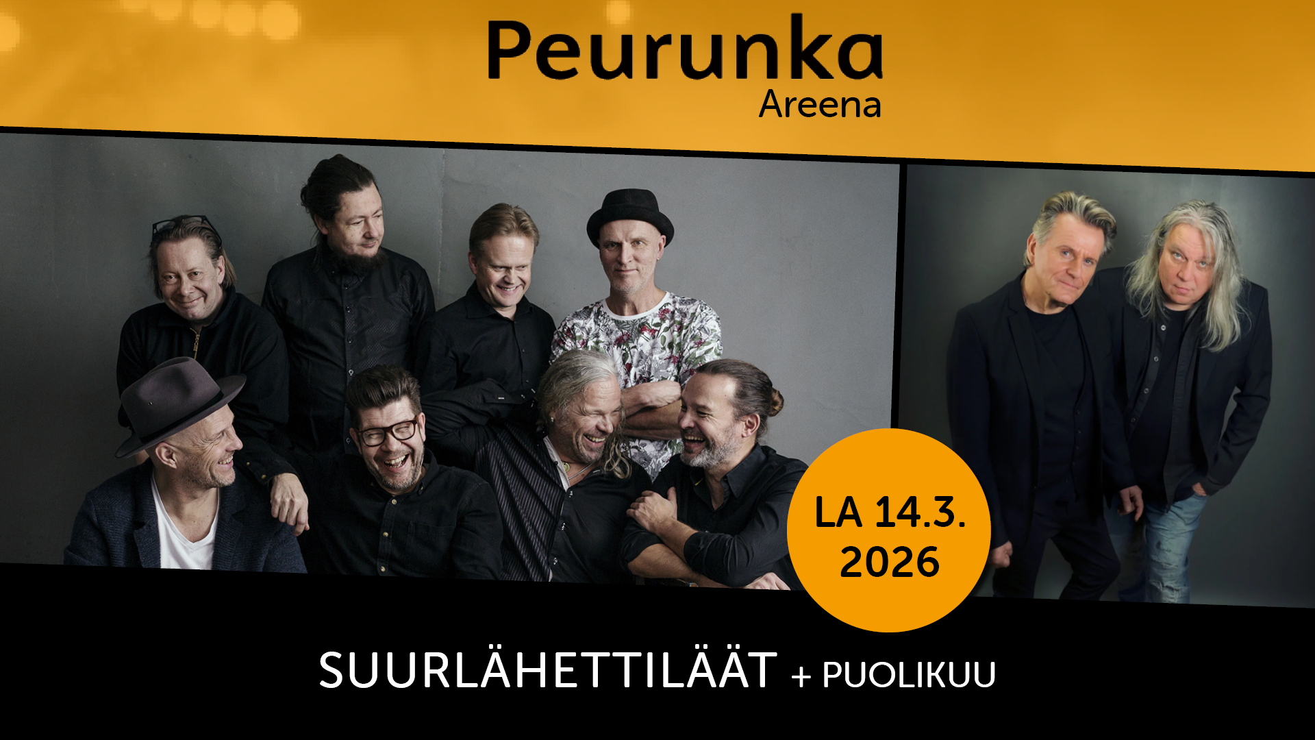 Suurlähettiläät + Puolikuu Peurunka Areenalla la 14.3.2026!